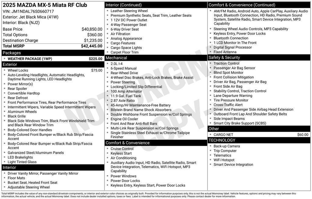 - Vehicle Name: Mazda MX-5 Miata RF