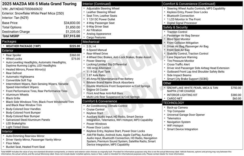 - Vehicle Name: Mazda MX-5 Miata