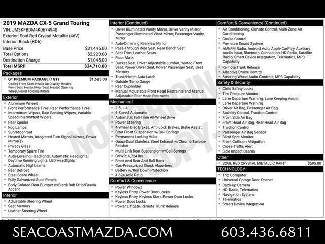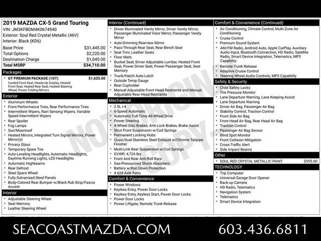 Soul Red Crystal Metallic 2019 Mazda CX-5 Grand Touring AWD 6-Speed Automatic SKYACTIV® 2.5L 4-Cylinder DOHC 16V